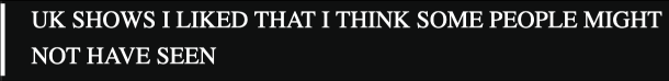 UK SHOWS I LIKED THAT I THINK SOME PEOPLE MIGHT NOT HAVE SEEN